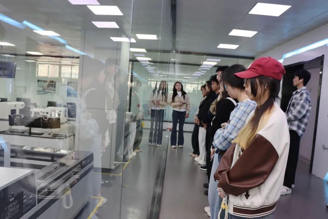 走进秦创原·佰美基因IVD科技创新中心,同学们参观了具有国际先进水平的生命组学与精准医疗技术平台。该平台配备了一系列国际高端仪器设备,研发团队始终以临床需求为牵引,推动科研成果向临床应用转化,致力于攻克临床诊疗中的实际难题。
